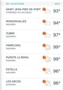 I have a weather app in which I entered most of the towns along the Camino. This is a sampling of the temperatures today.