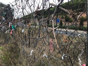 Some of the crosses have the names of loved ones with a date, but most are just simple sticks woven into the fence.