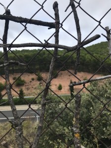 This part of the Camino stretches for a couple of kilometers. At first there is a long a part of just fence with these crosses. Pretty soon though the grapevines and wild berries start to grow through the fence so that the crosses are obscured.