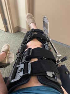 The emergency room fitted me with wrist and knee braces and I’ve been hobbling to the living room to sit in a recliner. Instead of trekking poles I have crutches. I am only allowed up to take care of the most important tasks. Needless to say it has been a difficult time.