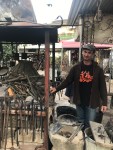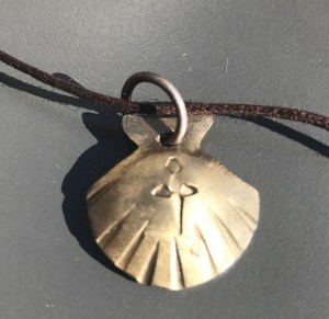 I was all for stopping 4 years ago and partaking in a pilgrim tradition, but not today. Just past the monastery is an iron worker’s shop and work shop. 4 years ago I bought this necklace. I was keen to stop and buy some more for the grand children. So I ducked in thinking I’ll buy and keep going.
